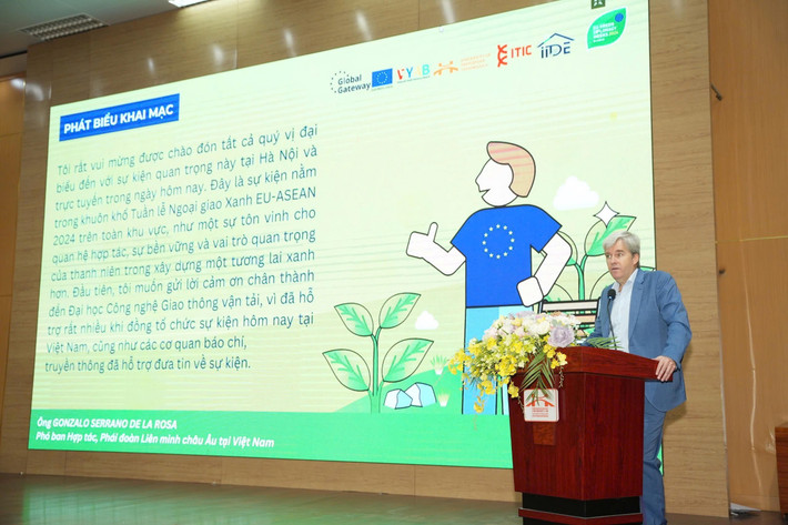 Phát biểu và chủ đạo tại buổi khai mạc, ông Gonzalo Serrano De La Rosa - Phó ban Hợp tác (EU) cho biết: Ngay từ khi được thiết lập vào năm 1977, quan hệ đối tác Liên minh châu Âu (EU) - ASEAN đã nhấn mạnh chuyển đổi xanh là một trọng tâm trong hợp tác. Việt Nam, với tư cách là đối tác thương mại lớn nhất của EU tại ASEAN cũng đã cam kết mạnh mẽ trong hành trình chuyển đổi xanh với mục tiêu đạt phát thải ròng bằng 0 (Net Zero) vào năm 2050. Tuy vậy, quá trình chuyển đổi này đặt ra những thách thức đáng kể, đặc biệt là về đào tạo việc làm, phát triển kỹ năng và thu hút nguồn nhân lực lao động trẻ dồi dào. Do đó, phát triển lực lượng lao động xanh là trụ cột quan trọng trong xây dựng nền kinh tế xanh, giảm phát thải, hướng tới hiện thực hóa Chiến lược phát triển xanh quốc gia giai đoạn 2021 - 2030, tầm nhìn 2050 của Chính phủ Việt Nam. Bên cạnh đó, tổ chức Lao động Quốc tế việc làm xanh là việc làm bền vững góp phần bảo tồn hoặc phục hồi môi trường, dù là trong các ngành truyền thống như sản xuất và xây dựng, hay trong các ngành xanh mới nổi như năng lượng tái tạo, hiệu quả năng lượng hoặc kinh tế tuần hoàn. Nói cách khác, việc làm xanh bao gồm các ngành nghề hiện đang có trên thị trường nhưng có thêm yếu tố bảo vệ môi trường và phát triển bền vững, và cả các ngành mới trực tiếp giải quyết các vấn đề về môi trường và khí hậu. Để có được việc làm xanh, nguồn nhân lực sẽ cần được đào tạo các kỹ năng xanh, bao gồm kiến thức, năng lực, giá trị và thái độ cần thiết để sống, phát triển và hỗ trợ một xã hội bền vững và sử dụng hiệu quả tài nguyên