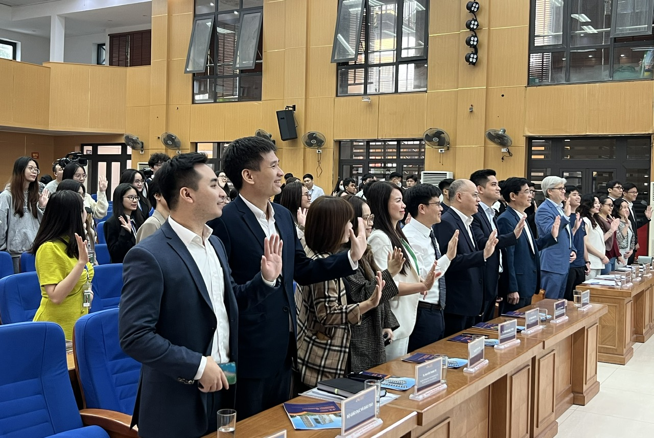 Tại sự kiện, các đại biểu cùng đứng lên thể hiện sự quyết tâm trong hành trình chuyển đổi xanh với mục tiêu đạt phát thải ròng bằng 0 (Net Zero) vào năm 2050