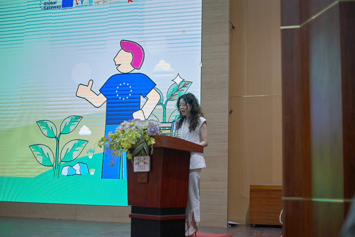 Bà Phạm Ngọc Anh - Chủ tịch Ban Cố vấn Thanh niên thuộc Phái đoàn Liên minh châu Âu tại Việt Nam (EU) phát biểu tại sự kiện
