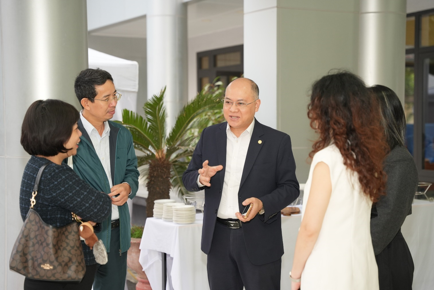 Bà Phạm Ngọc Anh - Chủ tịch Ban Cố vấn Thanh niên (EU) thay mặt Ban tổ chức cảm ơn tập thể sư phạm Nhà trường và các thành viên trong 2 Viện trực thuộc Trường đã đồng hành cùng chuỗi hoạt động do Ban cố vấn Thanh niên Việt Nam chủ trì góp phần vào sự thành công chung của sự kiện. Thời gian tới Ban cố vấn Thanh niên Việt Nam (EU) mong được tiếp tục đồng hành hiệu quả cùng Nhà trường và 2 Viện trong mọi lĩnh vực khi triển khai dự án Xanh tại Việt Nam.