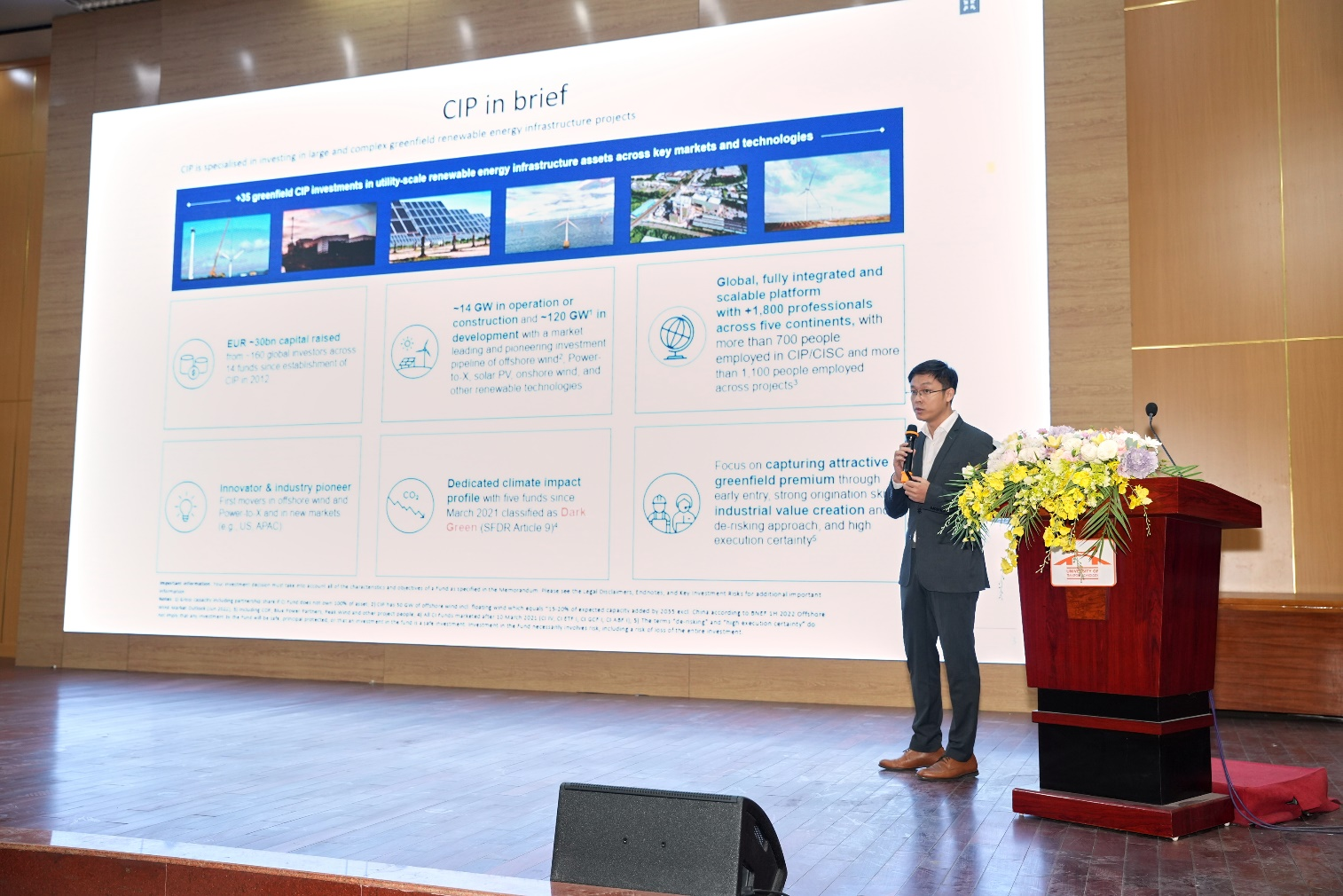 Ông Trương Hoàng Linh - Trưởng phòng Phát triển dự án Copenhagen Infrastructure Partners (CIP), báo cáo tham luận hội thảo “Thị trường việc làm Xanh trong ngành công nghiệp và kỹ thuật”