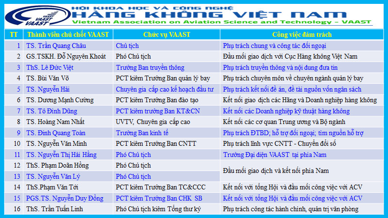 Phân công các thành viên lãnh đạo chủ chốt VAAST đảm trách các công việc chuyên trách
