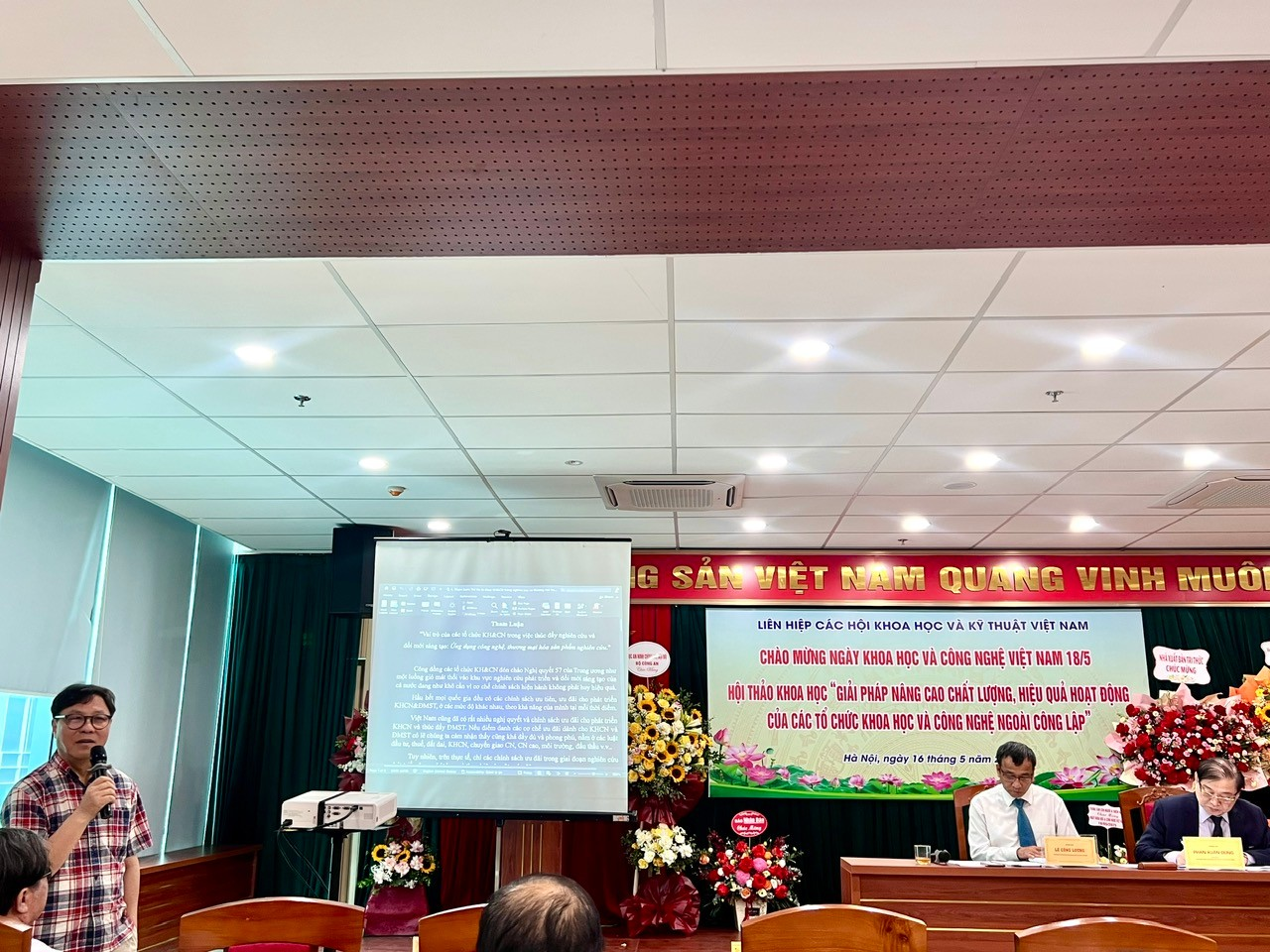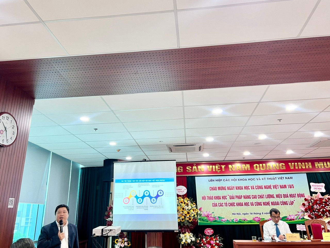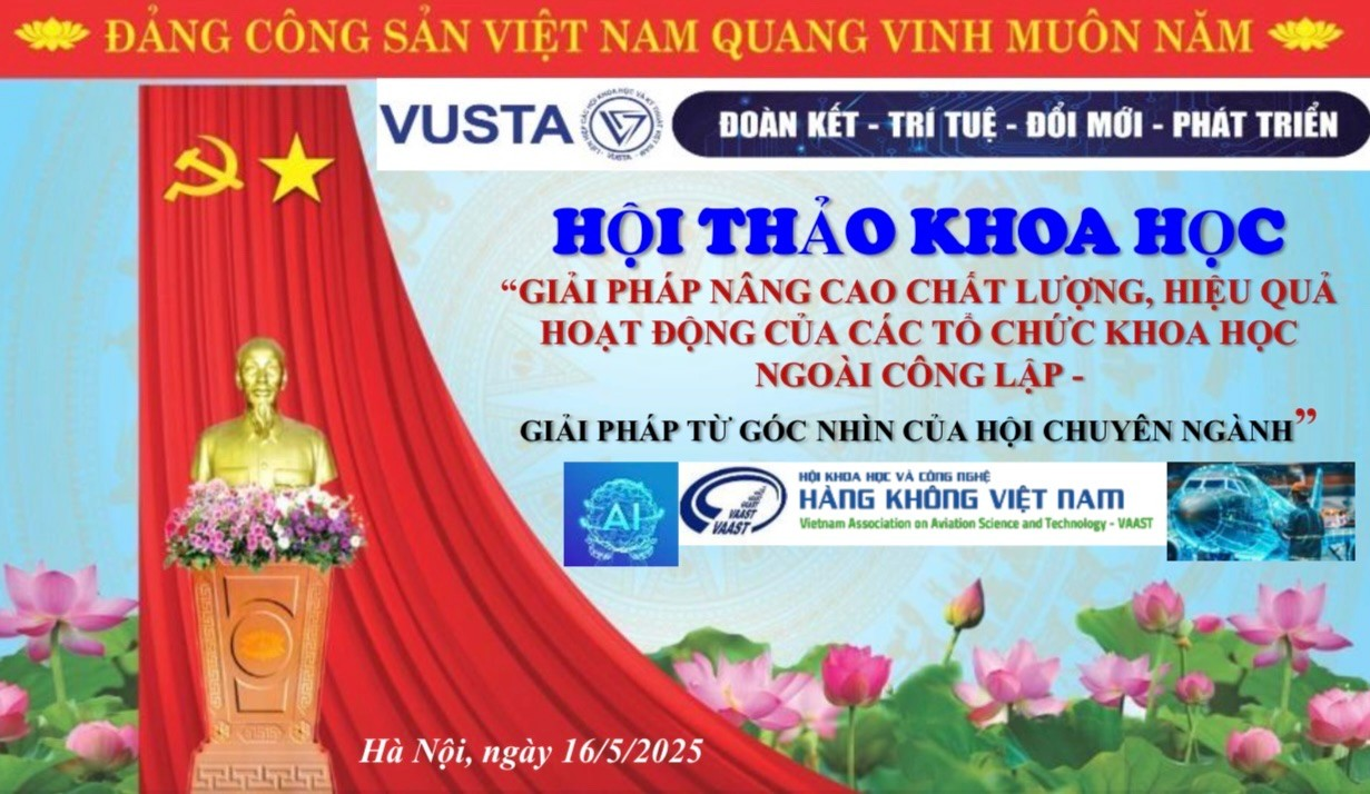 VAAST vinh dự được VUSTA mời tham luận tại Hội thảo khoa học “Giải pháp nâng cao chất lượng và hiệu quả hoạt động của các tổ chức khoa học ngoài công lập”, trong suốt 35 năm xây dựng và phát triển VAAST luôn tập trung vào hoạt động KHCN&ĐMST, tư vấn phản biện, đào tạo tập huấn, … điều mà Chủ tịch VAAST luôn trăn trở để đảm bảo tiêu chí gắn tri thức khoa học VAAST với các cơ quan, tổ chức cấp trên (Liên Hiệp hội Việt Nam, Bộ Xây dựng, Cục Hàng không Việt Nam, Tổng Hội Xây dựng Việt Nam, …), đồng thời tạo điều kiện và môi trường thu hút nguồn nhân lực tri thức khoa học trong và ngoài nước tham gia đồng hành cùng VAAST, qua đó đóng góp xây dựng cho ngành Hàng không gắn với nền kinh tế - xã hội của quốc gia. Trên cơ sở đó, VAAST đăng ký chủ đề tham luận “ Đổi mới công tác quản lý nâng cao chất lượng và hiệu quả hoạt động của các tổ chức khoa học ngoài công lập - Giải pháp từ góc nhìn của Hội chuyên ngành thuộc VUSTA” (Tham khảo toàn văn Bài tham luận tại Hội thảo khoa học). Bài tham luận nhằm Chào mừng ngày KH&CN Việt Nam 18 - 5 trong chuỗi hoạt động sự kiện tháng 5 ý nghĩa (Ngày quốc tế lao động 1 - 5; ngày sinh của Chủ tịch Hồ Chí Minh 19 - 5), hướng đến Đại hội đại biểu VAAST lần VII và Lễ kỷ niệm 80 năm ngày Thành lập nước CHXHCN Việt Nam (02/9/1945 - 02/9/2025).