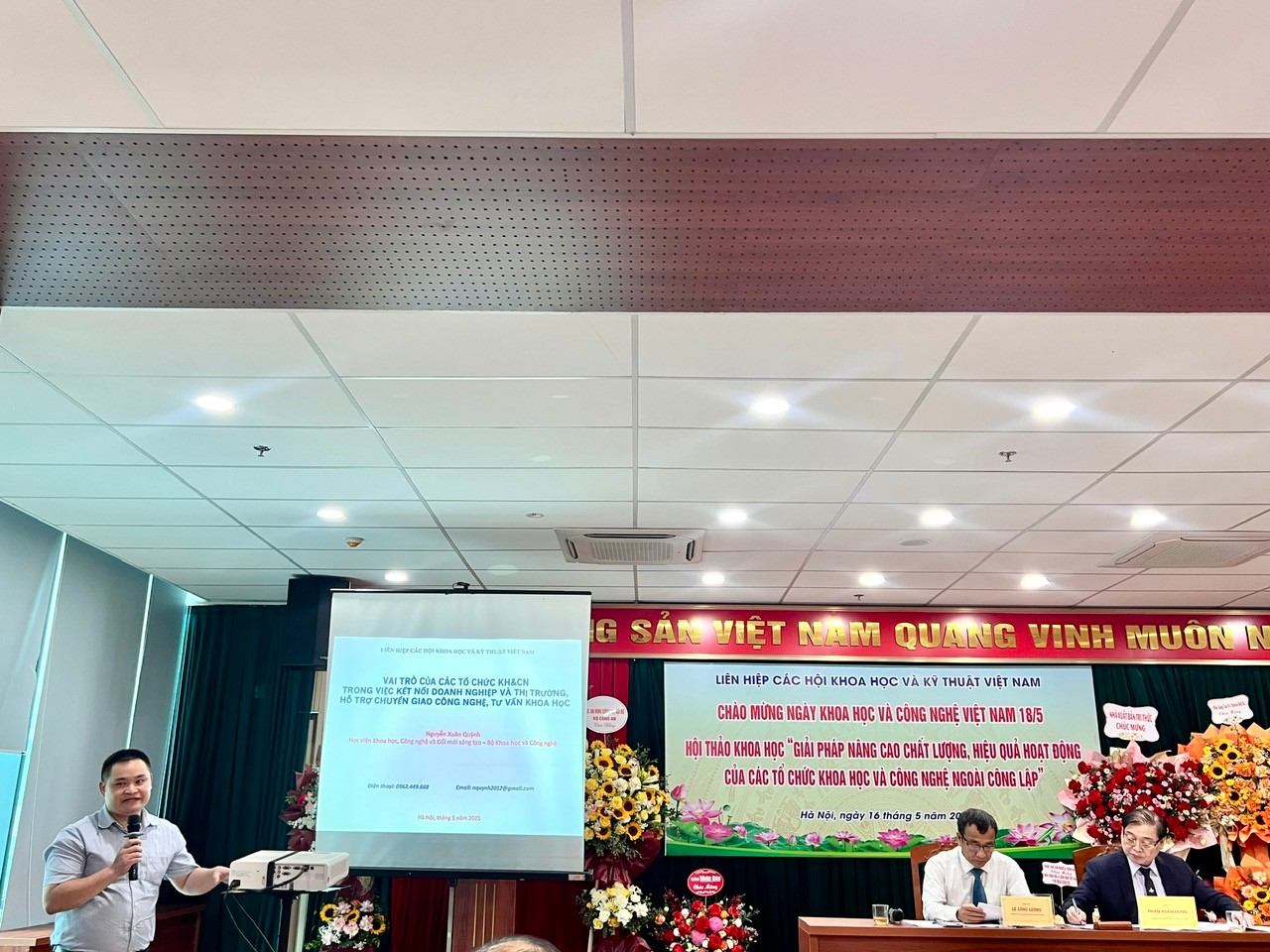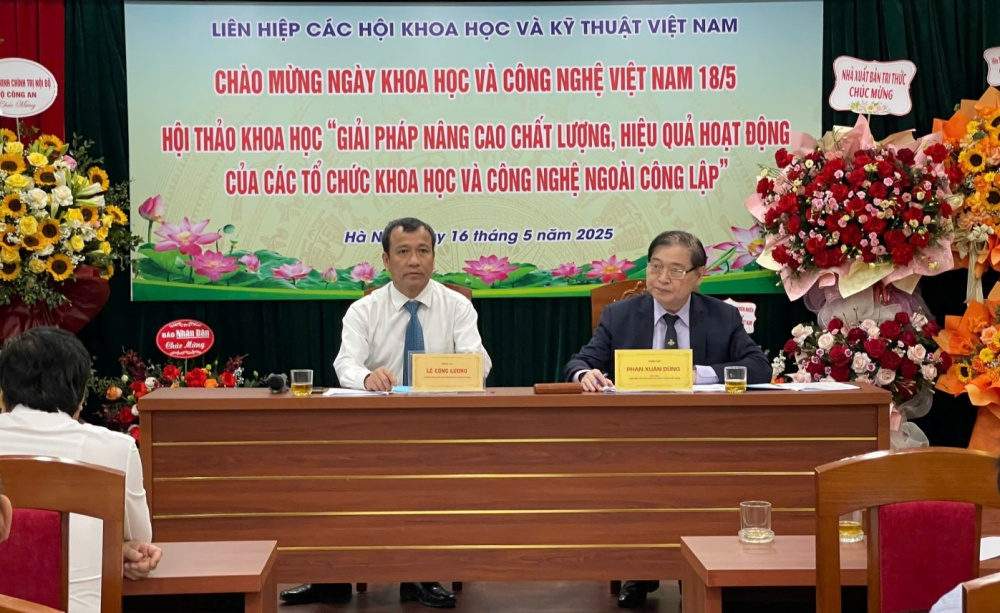 Ngày 16/5/2025 tại Liên hiệp Hội Việt Nam (VUSTA) đã tổ chức lễ kỷ niệm Ngày Khoa học và Công nghệ Việt Nam với chuỗi sự kiện (1) Phiên 1- Trao Quyết định và Giấy chứng nhận của Bộ trưởng Bộ Công an cho VUSTA đạt tiêu chuẩn “An toàn về an ninh, trật tự” năm 2024; (2) Phiên 2- Hội thảo khoa học với chủ đề “Giải pháp nâng cao chất lượng và hiệu quả hoạt động của các tổ chức khoa học ngoài công lập”, nhằm thực hiện Nghị quyết số 57-NQ/TW ngày 22/12/2024 và dự thảo Luật Khoa học và Công nghệ năm 2025.